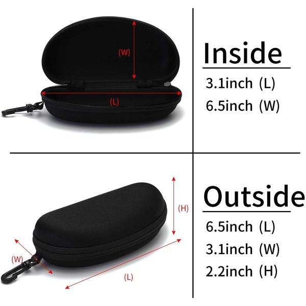 Sunglasses Case fits most sizes and styles sports sunglasses and safety glasses. This black hard shell glasses case are made from durable EVA material to prevents cracked frames and lenses. These waterproof sunglasses case protects glasses from rain, snow, spills or water. Suitable for outdoor activities such as swimming, hiking, biking,skiing, even your daily commute. One size fits most, from small children’ glasses to adult frames. With a microfiber wipe cloth, keep your glasses clean easily and with the clip, easily attach it to a belt loop, a backpack, tote bag.